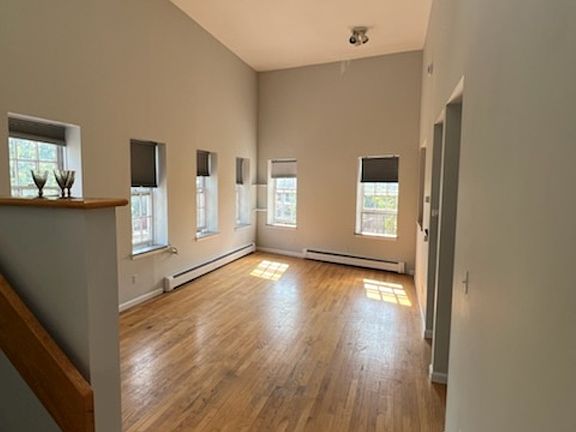 EXCELLENT LOCATION IN VIBRANT UNION STREET HISTORIC DISTRICT 3rd floor apartment on corner-lot has amazing views. Bright airy 1 Bedroom/1 Bath 2-level apartment. Walk to Poughkeepsie Train Station, Waterfront Park, Walkway Over the Hudson, Restaurants, Shoppes, Courthouse, etc. Easy access to Route 9, TSP, NYS Thruway. Amtrak and Metro North trains that whisk you to NYC, Albany, and beyond are only blocks away. Apartment has Living Room w Dining Area and Kitchen on main level with stairs leading to second level with 1 Bedroom and bath. Each apartment has one assigned off-street parking space so no need to compete for street parking. No pets please. Fenced shared outdoor space to rear of building is available for tenant use. This is a secure building with an on-site super. Available for June 1st occupancy. Call today to schedule your appointment. All prospective tenants MUST submit rental application with strong credit score and proof of income. This is a non smoking building. 12 month lease - renewable. Landlord pays water, sewer, trash. Building is non-smoking. All prospective tenants must complete rental application, provide proof of funds, and have strong references and credit.