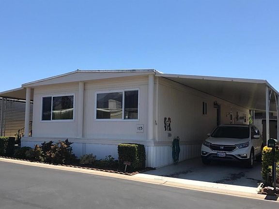 Spacious Home located on a small quiet street in the gated Ojai Villa 55+ Mobile Home Community. Newer features include dual paned windows throughout, furnace, plumbing, laminate flooring and exterior paint. Beautifully updated kitchen with newer appliances, countertops , light fixture, sink and faucet. Den is located adjacent to the kitchen and offers a full size closet for added storage. Laundry room with plenty of cabinetry. The oversized porch and covered patio are perfect for enjoying those spectacular Pink Moment Sunsets. Park amenities include gated entry, RV storage area, pool, spa, gym and huge clubhouse