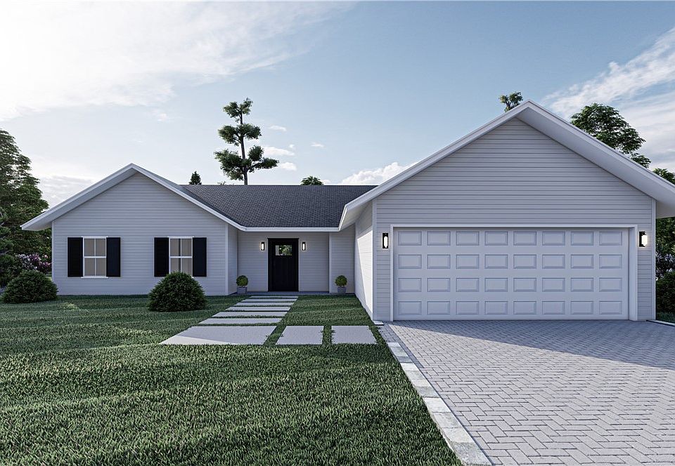 This 4 bedrooms, 2 bathrooms, one level home has so much to offer; from the versatility of an Open and Split floor plan to the natural light and neutral finishes. Just off the front porch, are welcomed into the home with a nicely sized Great Room that leads into the highly functional Kitchen. The Breakfast Bar and Closet Pantry will make your everyday tasks a breeze and countertop/storage space will never be an issue! Just down the hall are 3 guest bedrooms and a full bath. On the other side of the home is the spacious Master Bedroom with a Walk-in-Closet and full bath with dual sink vanities, separate shower, and Garden Tub. The standard selections for this home are vinyl siding, architectural shingles, shutters (front door will match the shutters), soft close door and drawer cabinetry, hardware(pull knobs), laminate counters, brushed nickel lighting package with 1 ceiling fan, carpet in bedroom, living room and hall way, and the vinyl in the kitchen, dining, baths, and laundry room.