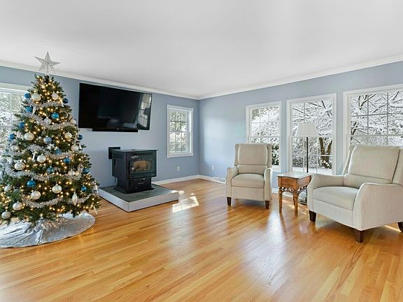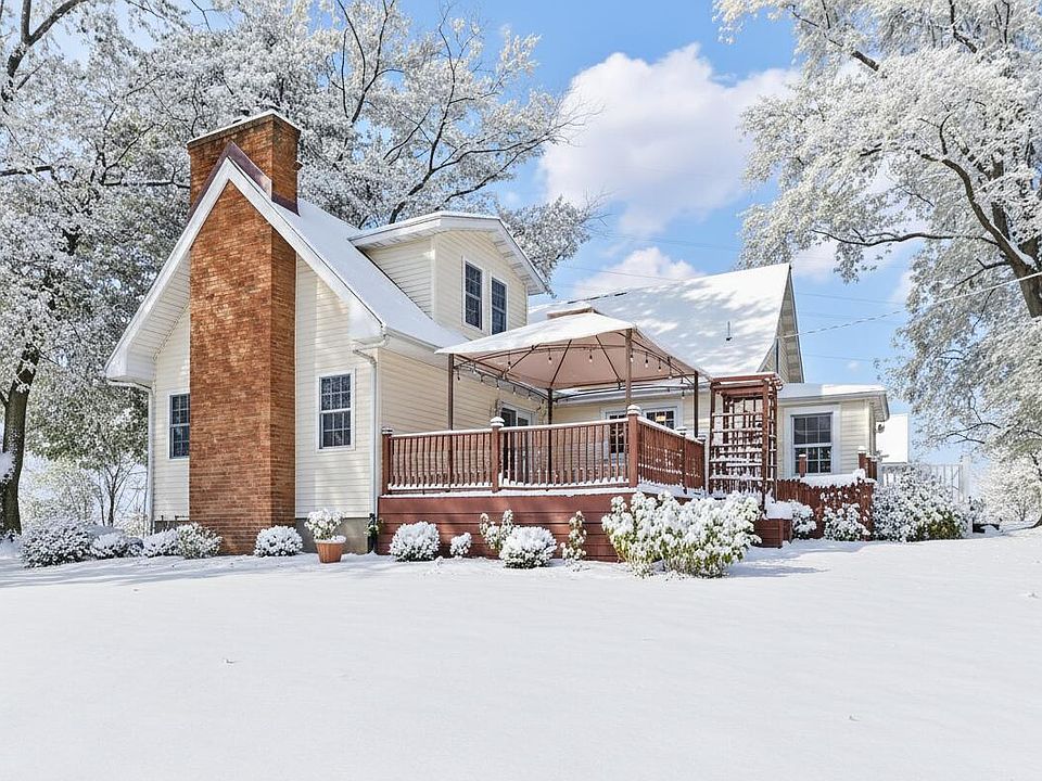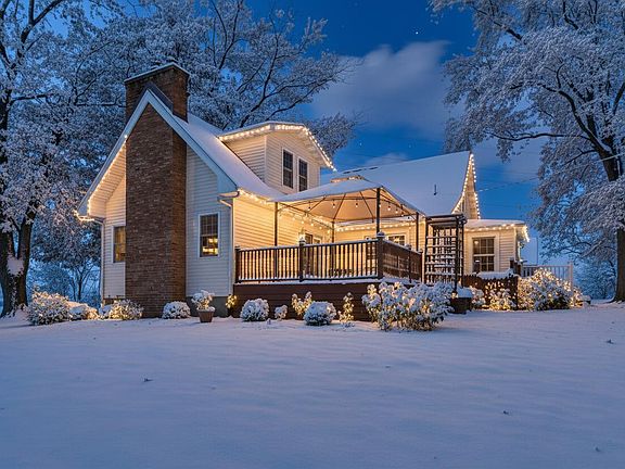 Want peaceful country living, close to all the things? Here it is! This immaculate home welcomes you with fresh paint and gorgeous hardwood floors throughout the main level. Updated kitchen offers full appliance package (Bosch DW), Quartz counters, and great natural lighting. Adjacent mudroom offers backyard access. Beautiful arched doorway leads to a spacious dining room and bright living room with pellet stove and access to gorgeous refinished deck. Two bedrooms with ceiling fans & built-ins flank an updated 3/4 bath with heated floors complete the main level. Upstairs, retreat to your primary suite with dual closets,, bonus room/office, full bath, and spacious laundry room. Need more space? The basement boasts a large rec room, potential 4th bed/office, a cedar closet, unfinished storage space, and access to the yard. Oversized 2.5 car garage with attached shed provides room for a workshop, tools, and toys. Small silo is the perfect setting for future outdoor parties! Updates/upgrades include: well tank 2 yrs, New 200 Amp service in 2024. Driveway sealed September 2025. Screens replaced. New landscaping and sidewalks. Call today!