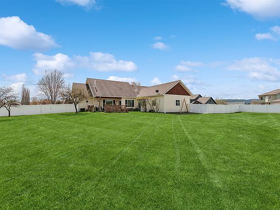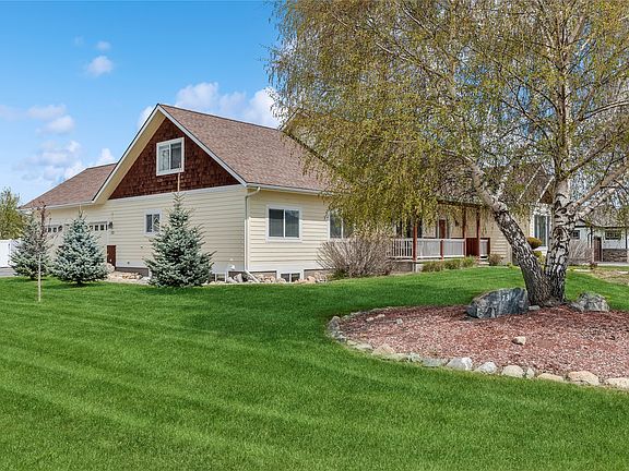 This 5 bdrm 4 bath home on .80 acre has a fantastic split floor plan w/private master suite separate from the other 2 bdrms & bath, private living suite upstairs w/full bath & walk-in closet as well as a downstairs day-lighted apartment with living room, full kitchen, bedroom and bath. The main kitchen has wood floors, wood cabinets with some glass display doors, built in pantry, gorgeous granite counter tops, stainless gas range, refrigerator, microwave & dishwasher. The formal dining room has wood floors & tray ceiling, the living room has vaulted ceilings, wood floors and a beautiful gas fireplace. Large master bedroom has a tray ceiling, 2 closets, one is a walk-in, large vanity with 2 sinks & storage cabinets, jetted tub and shower. Home has a 3 car garage, covered private back patio, landscaped, pie cherry and plum trees, underground sprinklers and A/C. Park is across the street. Call Bobbie Vlasak 406-253-1637 or your real estate professional.