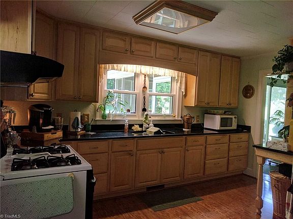 Beautifully maintained 4 Bedroom, 2 Bathroom Home within walking distance to historic downtown Mocksville. Screened in back porch over looking the yard with gardening areas and deer roam through. Kitchen recently remodeled with custom cabinets and granite counter tops, new flooring. Large living room with gas log fireplace. Main level bath with jetted tub.