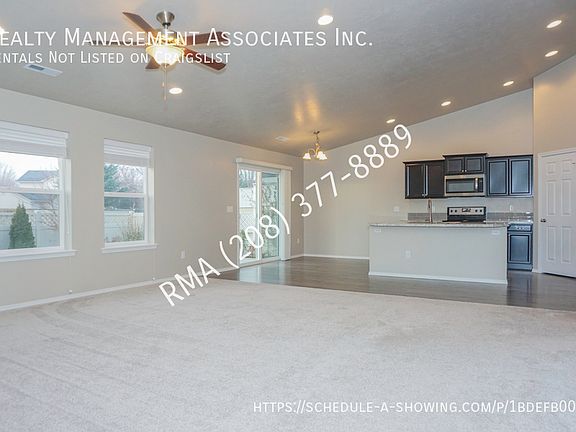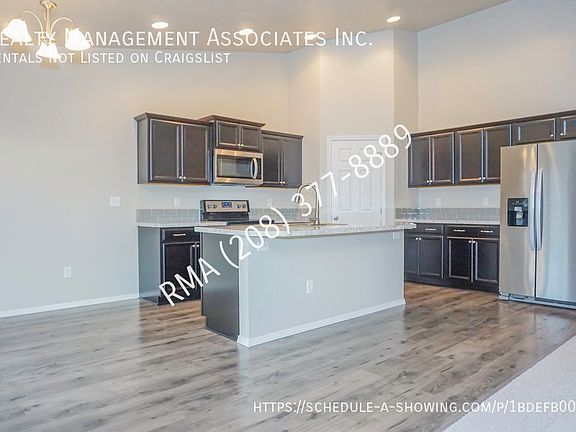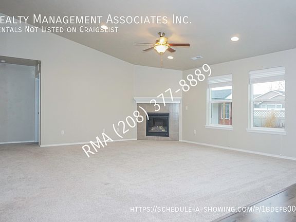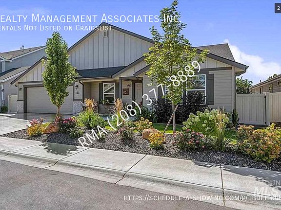 This newer 4 bedroom/2 bath home built in 2018 is located off Meridian Rd between Ustick Rd & McMillian Rd. Home is centrally located in Meridian close to Settler's Park, top rated schools (local Elementary-rated 8, Middle School-rated 8 and Rocky Mountain High School-rated 10) and all that Meridian has to offer! Spacious single level home features a den/office area, split bedroom design, open living room with gas fireplace that flows into a beautiful kitchen and dining area. Kitchen features all stainless steel appliances, island and pantry closet. Separate mud room and laundry room with extra storage. Washer & Dryer Hookups. Large Master Bedroom featuring walk in closet, master bath with duel vanity, soaking tub and separate shower. Stunning fully fenced backyard with garden planter boxes, locking storage shed, minimal grass and large patio for entertaining. Extra deep 2 Car Garage. You don't want to miss this beautiful home! 12 Month Lease & Property Liability Insurance Due at Move In. Tenant responsible for all utilities. No Pet Property. Non-familial roommates will not be accepted for this rental. This property is located in the White Acre's Subdivision and subject the rules and regulations of the HOA. For questions about residential rules including trailers, parking, ect. please reach out to the HOA management: