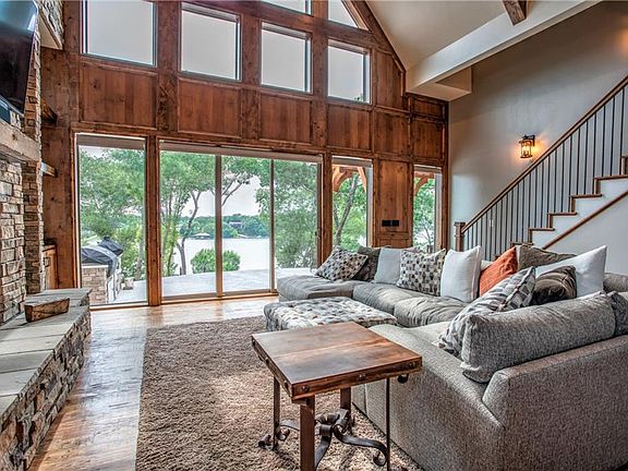 A rare find! Happiness is owning your own home at Moss Lake.Picnic, fish, swim, boating & play at your front door! Enjoy cookouts with your family & friends on the large view deck for outdoor living, with spectacular views of sunsets glistening across the lake. Features too many EXTRA features to mention.5 BR + game room, reading litghts, blackout shades, Wolf range,commercial refrigerator, Bosh DW, leather granite, bar area includes beverage & wine refer, Sec. System,inside-outside stereo, 100 lb icemaker, 2nd refer in utility, Bug system, 14' com. garage door, salt concrete patios,floating boat dock with sundeck-LED lites.Foam insulation including garage. Green Egg, outdoor kitchen.Home is turnkey!Furnished!!