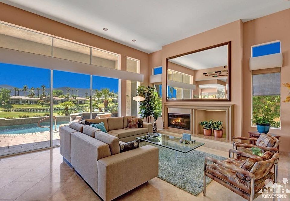 South-Facing Elevated Pool/Spa Home with Gorgeous Lake/Water, Mountain & Golf Course Views in Beautiful Indian Ridge CC. Decorator Furnished, Popular PV3 home has been modified like the B2 Great-Room Floorplan. 3 BR, 3.5 BA, 2712 sq ft home with Formal Dining Room, Living Room with Fireplace, Gourmet Kitchen with Granite Counters, Family Room with Wet-Bar and Separate Laundry Room. Tons of high quality upgrades include granite counters, stone flooring and custom window coverings. Stone patio with Private Pool & Spa, Electric Awnings, Custom BBQ and Awesome Southern Views overlooking #13 Fairway on the Grove Course. An exceptional property... Offered Decorator Furnished per inventory list.