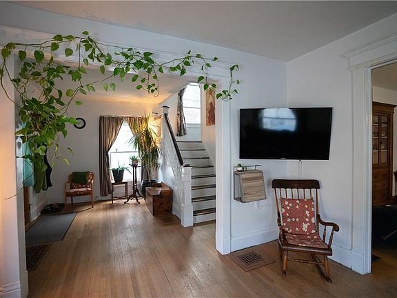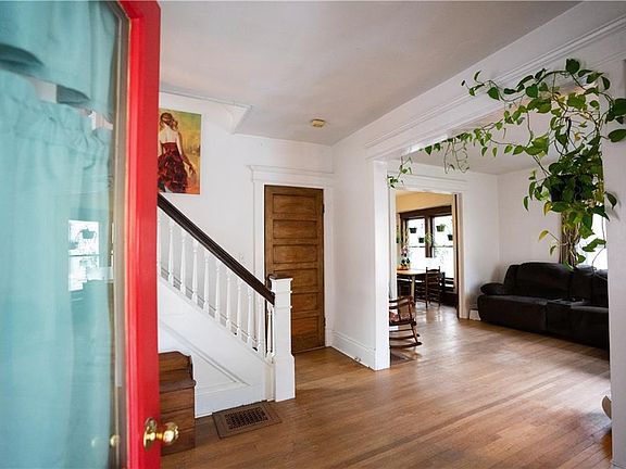 Walking up this home with a beautiful curbside appeal with various plants & flowers cultivated, also featuring a mini permaculture garden, & a large front composite deck. Inside you will find a grand entrance with tall ceilings, living room, formal dining room with beautiful woodwork, kitchen with a pantry, & back covered deck over looking your fully fenced yard. Upstairs you will find 3 large bedrooms with plenty of closet space, & a full bath. The spacious full sized attic, and the amount of light the house receives are a must see! Call today for your private tour.