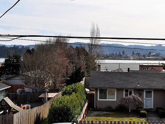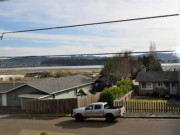 Truly gorgeous Panoramic view of the Bay & North Bend Bridge and yet affordable! Fresh, clean and Move in ready; open floor plan, recent bamboo flooring and carpet, new upgraded appliances in kitchen, new oak cabinets, interior paint, large fenced yard with a 20X10 outbuilding. Room for RV & Boat, and sought after North Bend School District.