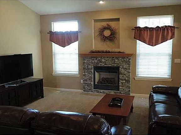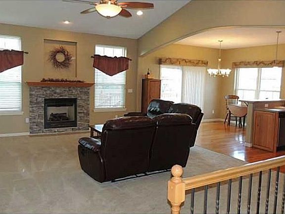 Beautiful ranch home with four bedrooms and three full baths! Located just a few blocks from championship golf course Hunters Ridge! Some of the features include vaulted ceiling in the great room, 9' ceilings throughout, huge wrap around deck (432 sq. ft.), and extra large 3 car (820 sq. ft.) with utility door off the back! Tons of upgrades include lighting, hardwood floors, partial stone exterior, transom windows, archways, upgraded cabinetry in kitchen, all kitchen appliances stay. Large master suite with walk in closet, garden tub, shower and double vanity sink. Large lower level rec. room with daylight windows. Brand new water heater and newer roof.