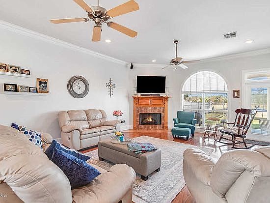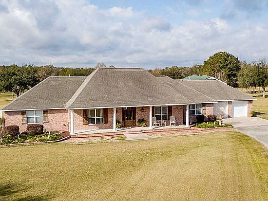 This 10.24 acre estate in Youngsville is the full package offering 4 bedrooms and 4 FULL bathrooms with 3130 sqft. A fully fenced in, in-ground pool sits off the back patio overlooking the beautiful view of property. The property includes a pecan grove and fully stocked pond. The 1836 sqft shop has a roll up door on the front and double doors in the rear for ease of access. The 702 sqft barn has 2 horse stalls, a tack room with Ac/heat. There is a portion of the property fenced in for live stock and a chicken coop on the backside of the barn. The home includes a large garage measuring 652 sqft. with storage cabinets. The interior offers natural paint colors, crown molding, no carpet in the home. The arched windows in the living room and kitchen allow lots of natural lighting to come through the windows. The kitchen includes stainless appliances, real wood cabinets offering ample storage and a bar overlooks breakfast nook. The breakfast nook or sitting area has view overlooking the property but the home also has a formal dinning area for larger gatherings. Three bedroom suites with 3 full baths are located on lefts side of home and the 4th bedroom is on right side with a full bathroom in the hallway. The master bathroom has dual vanities, dual closets, a garden tub and a standup shower with seat. The oversized laundry room has a sink a large closet and additional cabinetry for storage. Gas is supplied to lanters, fireplace, hot water heater, dryer and a hook up on the back patio. The home also has an alarm, camera system and surround sound that is included.