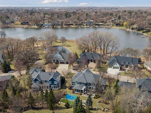 Rarely available, this Charles Cudd executive two-story residence is tucked into the beautifully lush community of Hidden Lakes. This gorgeous street of custom homes is located across from serene Sweeney Lake, with neighborhood dock for kayaking, fishing and paddle boarding. Stroll directly into Wirth Park to enjoy miles of hiking, biking and ski trails or golf the public course. Imagine family and friends enjoying the $200K landscape transformation of this impressive site, including stone retaining walls, sport court, pergola, gas fire pit, pizza oven, grilling station, decking, paver patios, playground and putting green! The home interior is open and bright, with high ceilings, architectural archways, handsome wood floors and walls of glass overlooking the magnificent back yard. Gather in the renovated kitchen/great room with generous center island and yards of quartz counters with herringbone backsplash. Family members can spread out in the library/music room, the home office and the delightful screened porch. Upstairs are four very large bedrooms, all featuring walk-in closets, and three baths, including the 21x20 luxurious primary suite with sunset views of Sweeney Lake, a teen ensuite and a Jack and Jill suite. Head downstairs for play time, exercise, and media in the well-appointed lookout level. A 5th non-egress bedroom with adjacent ¾ bath makes a wonderful guest suite. Amenities include a triple garage, irrigation system, security system, invisible fencing, top mechanical systems and brand-new roof. So convenient to downtown Mpls restaurants and sporting events, and just five minutes to Breck (the Breck bus collects several students in Hidden Lakes). Have it all, here on Bridgewater Road.