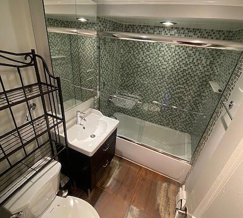 Beautiful Recently renovated Garden level 2 bed 1 bath. In unit washer and Dryer and off street parking spot included! Private fenced in porch/ patio area, Heat and hot water included! Call text or email for showings today - virtual or in person! Right near train and shops and restaurants. Owner pays heat and hot water Parking included