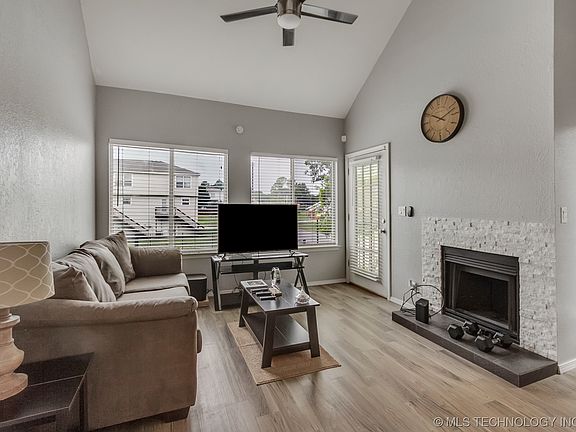 Recently Updated, Move-In Ready, Second Level, Two Story Condo With 2 Bedrooms, 2 Full Baths, and Inside Laundry. Located Close to River Parks and Tulsa Hills, Hospitals and Shopping. This Condo has been Recently Painted Inside, has Wood Like Vinyl Floors, Glass Tile Back-splash, Vaulted Ceiling in Living Room with Fireplace and Balcony. 2nd Balcony off the Master Bedroom Upstairs. Selling AS-IS! Washer, Dryer and Refrigerator Stay. HOA in Place to take care of Exterior Maintenance, Grounds Keeping and Trash/Water/Sewer/ Has Covered Parking. Listing Agent Related to Seller
