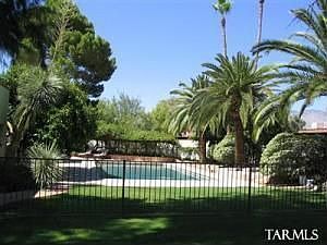 For more information on this property, contact the Listing Agent, Christine and Russell Long at (520) 529-1116 or longs@LongRealty.com. Seller will consider partial exchange for a smaller home. The historic Chambers Estate on 1.2 gated acres in North/Central Tucson. Begun in the 1930's, this lovingly restored Spanish style Tucson monument w/portions of the exterior blt from San Augustin Cathedral offers a park-like setting, 3,479 sq ft main house recently remodeled includes gourmet kitchen w/granite counters, designer appl, glorious Mstr ste, 1,565 sq ft GH w/bsmnt, mini barn/bunk house, lush lawns, mature trees & vegetation, 4 fountains, waterfall, private & impeccable.