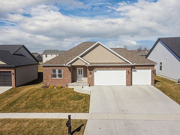 This meticulously cared-for ranch home is truly a gem. It offers 4 bedrooms, 3 full bathrooms, vaulted ceilings on the main floor, and 9-foot ceilings in the basement. The main entrance is inviting with its gorgeous hickory hardwood flooring that flows into the family room and throughout. Open to the family room is the kitchen with stainless steel appliances, a large island, quartz countertops, soft-closed kitchen cabinets, pull-out shelves, and a dining area that enhances this home and gives it great views and tons of natural sunlight. From the dining area, there is a sliding door with internal blinds leading to a large patio with an installed pergola to make relaxing or entertaining enjoyable. This home has a main floor primary bedroom with an ensuite with a tiled shower, double vanity, and a large walk-in closet. Laundry is conveniently located within the mudroom making life easier while also offering more storage space. There are two additional rooms and a full bath on the main level. The basement is lovely and has a craftsmanship-built barn door that helps separate the unfinished/finished sections. Here you will find more room to enjoy with its LVP flooring, wet bar, high 9-foot ceilings, full bathroom, and the 4th bedroom with another LARGE walk-in closet. Home has Wi-Fi accessible thermostat and "myQ" smart garage door openers for the 3-car oversized garage. The garage is 25 feet deep, and the 3rd stall is 30 feet deep, allowing more than enough space for a full-size pick truck and a workbench. What more can you ask for? And if you truly want more, then you can certainly add it to the unfinished section of the basement. This home is conveniently located near trails, State Farm, restaurants, grocery stores, gyms, and much more.