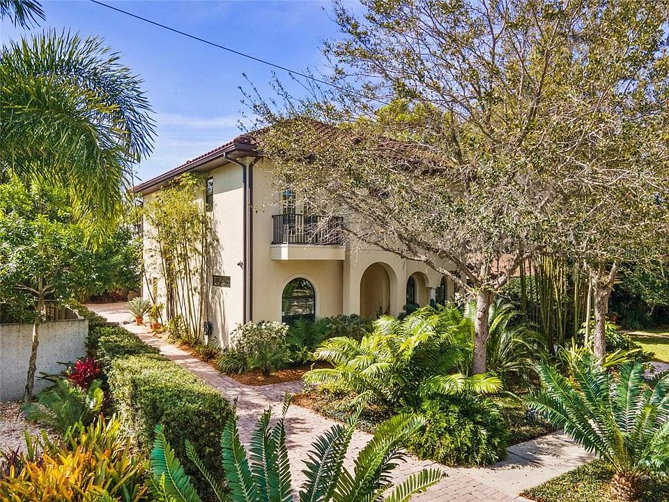 Located West of Trail and nestled among an abundance of tropical foliage in the historic neighborhood of Granada, this 2008 built two-story home offers all the modern conveniences of a newer residence while positioned amid the surroundings of Old Florida charm. Constructed by Vision Homes, this custom designed solid concrete block home with whole house hurricane protection and Icynene insulation was built to withstand the test of time. The creative floor plan offers flexible living to suit the needs of any family. Enter the residence through a grand foyer with 10-foot ceiling and meander to the formal dining room or secluded library/den. Travel further down the hall to enter the large family room with gas fireplace and walls of glass to the outdoors with views of the lush garden. Joining the family room is the open gourmet kitchen with breakfast bar. With a butler's pantry for entertaining, the kitchen boasts dark rich woods, granite counters and stainless-steel appliances. A private elevator or gently sloping stairs give access to the second level which includes an expansive master bedroom suite with dual walk-in closets and private balcony and two additional guest suites. Offering the perfect guest quarters, the fourth bedroom suite has a private entry and is located above the 2-car detached garage. With this perfect location, only a short distance away you will find Southside Village with gourmet restaurants and shops, Sarasota Memorial Hospital and numerous medical services, and only a 5 minute drive to the white powder sand at Siesta Key Beach.