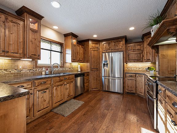 Updated and well maintained home in a quiet south Bismarck neighborhood within minutes of parks, restaurants and shopping. This home boasts a large custom built kitchen with knotty alder cabinets, stainless steel appliances and engineered hardwood floors. The main floor bathroom has custom tile work throughout the floor and shower surround while the custom built dual sink vanity creates creative storage solutions. Flooring in this home has been updated throughout. Whether it's newer carpet in the bedrooms and basement or engineered hardwood in the kitchen, dining and living room the flooring surfaces are clean and current. The gas fireplace in the family room creates an inviting space for friends and family. The double stall garage is finished and heated. There is a camper pad and large shed for additional storage options. This corner lot creates unique privacy for the deck and partially fenced yard. The furnace and A/C have been updated within the last 4 years. New shingles, soffit, facia and gutters to be included with this sale. Call your Realtor today for a private showing.