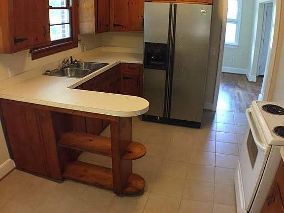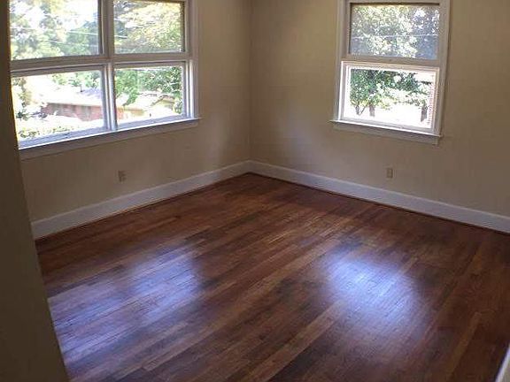 3 bedrooms (1 bedroom could be a den/office), 1.5 bathrooms, living room, dining room, eat-in kitchen with stove and refrigerator, central air with gas heat, washer and dryer connections, carpet and hardwood floors, screened porch, fenced yard, restriction on pets, off-street parking, tenant pays all utilities.