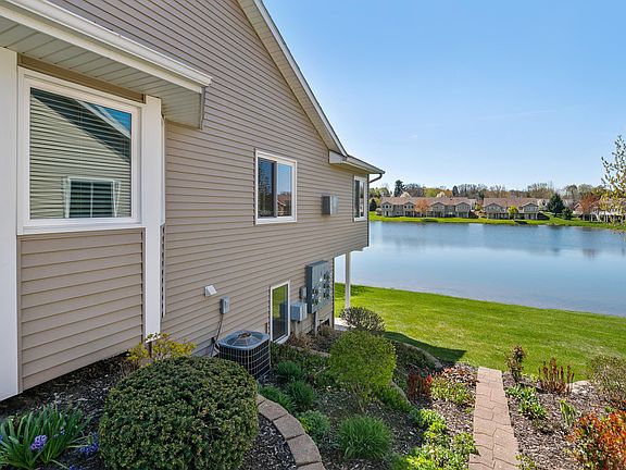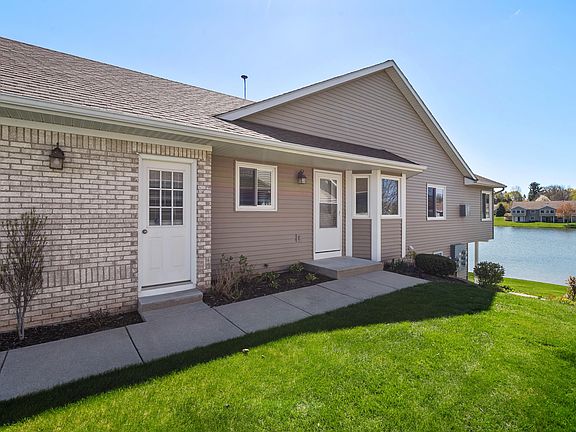 Major price improvement! Lovely waterfront condo located in Byron Center. This walk out end unit is ready to move right in. Open concept main floor with cathedral ceilings and 4 season porch attached. Coretec lvt flooring througout, newer surfaces in the kitchen. Great room features a cozy gas log fireplace. Master bed with full bath looks out over the lake. Home office or 2nd bedroom up as well. 1/2 bath with main floor laundry. Lower level includes a family room with gas log fireplace, walkout slider to patio right on the lake! Roomy 3rd bedroom with large bath. Bath has an oversized spa tub with a stand up shower. Tons of storage below. More updates include Polar seal replacement windows, water heater 2018. Mature trees and perennials are ready to bloom this spring.