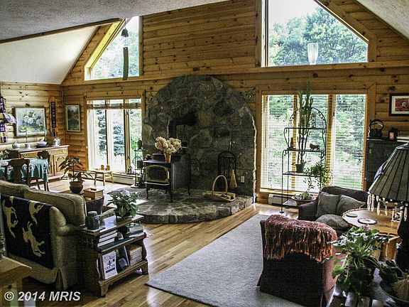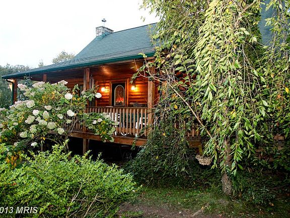 Log home built by Sines Construction has open floor plan with gorgeous stone work, large front porch to enjoy nature on 40 acres. Barn, greenhouse and cabin included. Walking trails and stream to enjoy. Cherry hardwood floors in great room with soaring ceilings and loft overlook area. Garage and full heated basement with exterior entrance and built in cabinets. Zoned hot water boiler heating.