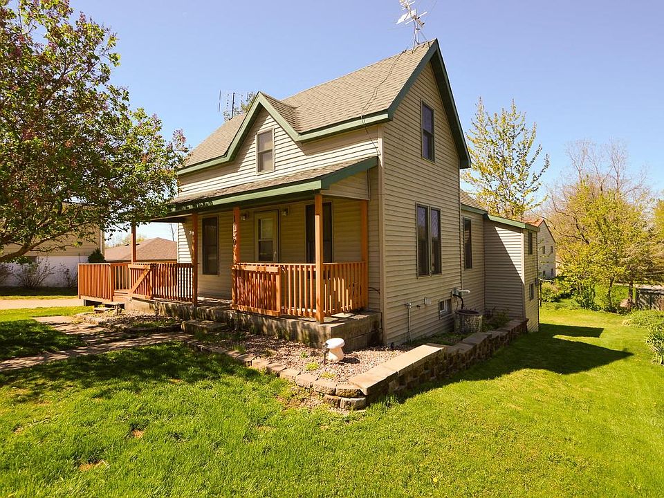 Welcome in to this hard to find affordable four bedroom two bathroom home. Low maintenance exterior includes a large deck covered front porch. Enter the front door to a large living room leading to formal dining space and kitchen with another entrance from mud room. Large full bathroom and primary bedroom complete this level. Upstairs has two bedrooms plus open area good for office, toy room, etc. The walkout basement had previously been rented and offers one bedroom, second kitchen and full bathroom with separate laundry hookups. However you use this space it adds a lot of storage and flexibility. The large parking pad out front has 220 electrical post for RV or similar hookup. Call for your opportunity to view this attractive home today.
