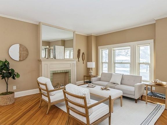 This charming home, built in 1910, has been thoughtfully renovated over the years while retaining its distinctive character. The large, open living & dining room combo features beautiful hardwood floors, a faux fireplace, & an abundance of natural light. Double doors lead to a cozy den with built-in shelves. The primary bedroom is on the first floor & includes an updated primary bath with a walk-in shower & heated floors. The kitchen boasts stainless steel appliances, & a conveniently located work desk tucked into the corner. Upstairs, there are four rooms & a full bath. The upper level is permitted as an Accessory Dwelling and has a private entrance, offering the potential for additional income. The basement is a blank slate, providing ample storage space. The large backyard includes a detached four-car garage—yes, you read that right, four cars! Back porch is a great place to start and end your day when weather permits.