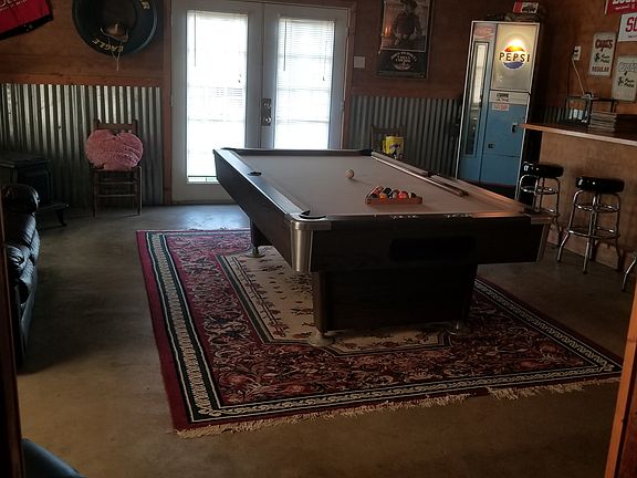 Homey Country Home on 4 Acres Ft. Gibson!! Nice open living/dining/kitchen area. One bedroom and bath down and 2 large bedrooms and bath upstairs. Nice large utility/storage area w/sink, huge man cave in back brimming with fun and great place for family games and entertaining. Pretty 4 acres with wet weather creek great for hobby farmer. Metal roof, septic system 5 yrs old, new range and dishwasher, pellet stove, alarm, hard surface road, older barn, 2 car garage, nice covered front porch.