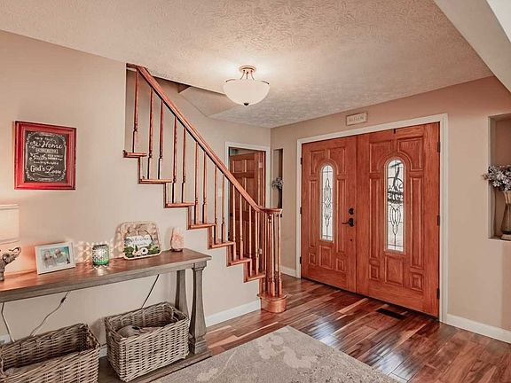 Private country living on Evansville's north side! This 4-6 bedroom, 4.5 bath, 5500 sq foot home has tons to offer. Built from the original bricks of the historic downtown Central High School this home features 2 master suites, 3 wood burning fireplaces, walk-out basement, 43x19 in ground pool, 1.6 acres and many updates. The large foyer entry opens up into a bright and sunny living room with brick fireplace. The formal dining room is adjacent to the eat-in kitchen with new appliances, solid surface countertops and is open to the family room. The open floor plan is fantastic for family and friends with the 2nd fireplace and access to the huge 18x10 sun room. There is also a private home office. Completing the main level is a remodeled half bath and large laundry room. Upstairs, the first of 2 master suites will definitely impress. At 22x20 it offers wood burning fireplace, walk-in closet measuring 12x12 and a remodeled bathroom. The custom walk-in shower is 6x6 with rain shower head and bench. The 2nd master is also upstairs with huge closet and ensuite bath. The other 2 bedrooms are generous in size with plenty of storage and share a remodeled hall bath with soaking tub. The walk-out basement with new flooring and freshly painted offers a huge rec room, 2 bedrooms, full bath and utility/storage room. The fenced pool area has covered patio, bar area and multiple brick paver seating areas. The exterior of the home features oversize attached garage with workshop, brick walkways, double driveway and updated landscaping. Some updates in the last 5 years include: hardwood flooring, new carpet throughout, remodeled baths, all new fixtures, ceiling fans, new appliances, vinyl fence, new front door, new solid oak interior doors, new trim and more.....