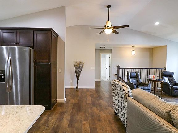 Stunning, like new 3 bedroom 2 full bath, full walkout basement with attached oversized garage. Whirpool fingerprint-resistant stainless steel appliances, espresso-toned custom cabinetry with breakfast bar, two lazy susans, and granite countertops throughout. Main floor master bedroom suite with large walk-in closet, tray lighted ceiling, walks out to a 24 x 12 deck. The living room features vaulted ceilings, a vented propane gas fireplace, an additional electric fireplace, and a custom-built entertainment center. The lower level is roughed in for a bath, offers a 400 amp electric service, and plentiful space for additional bedrooms and a family room. The garage has a steel back, insulated door with a belt-driven opener, and lots of wall shelving. Located on two lots in a private setting within walking distance of Lac Capri Beach. Additional Rooms: Mud Room