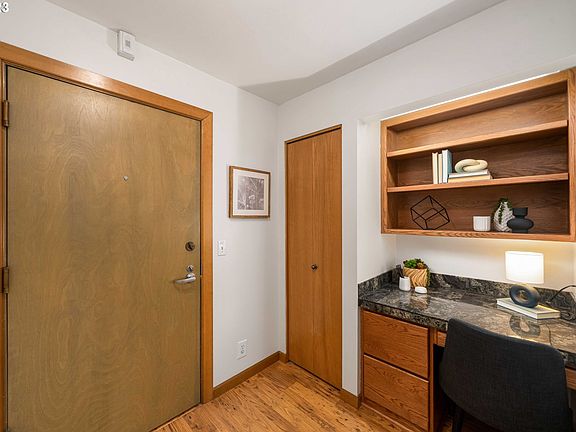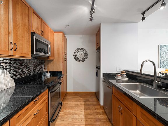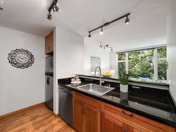 Discover this delightful, updated, one-bedroom condo in the lively Waterfront district. This condo features an open kitchen design, a spacious walk-in closet, and a sunny south-facing orientation with ample windows that allow the natural light to pour in. Step out onto your covered patio to enjoy the outdoors in any season. The entire unit has been freshly painted, providing a clean and inviting atmosphere. The parking spot is located right off the elevator and separate storage, conveniently located on the same floor as the condo. This prime location is near Portland State University and the renowned farmers market, ensuring easy access to all the amenities you desire. Additionally, this condo is mere steps away from various restaurants, shopping boutiques, scenic walking trails, and the bustling downtown Portland scene. The nearby light rail system and proximity to I-5 offer convenient transportation options, and a bike score of 91 make this condo an ideal choice for urban living.