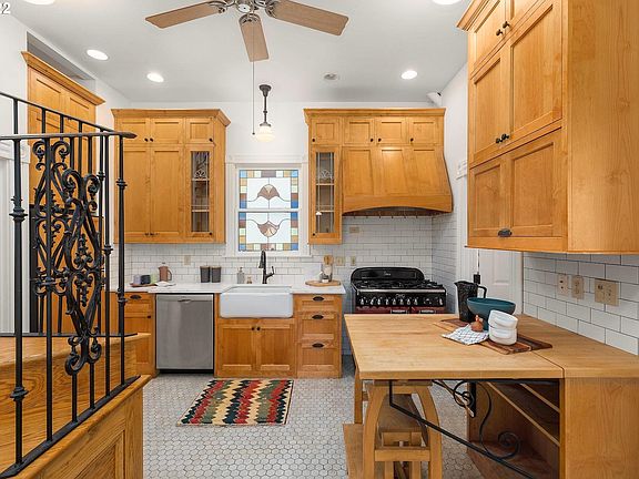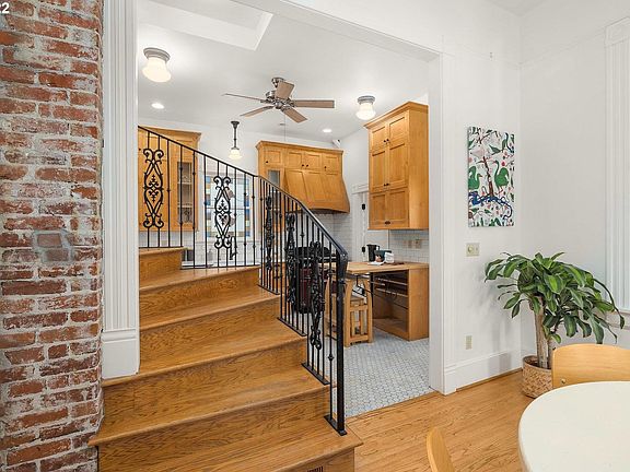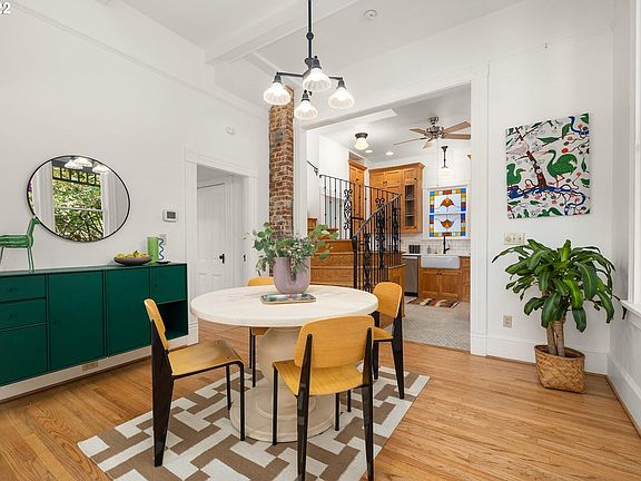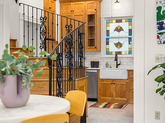 Meet Goose Hollow's Golden Egg: Charming Victorian with period detail, yet all today's modern amenities. Towering ceiling height, Rapunzel balcony, corner fenced lot with blooms year round. 3 br, 2 ba and a rare tuck under garage. Ample storage, chef's kitchen, custom build outs. Clawfoot tub, walk in closet, sunny corners and *so* much personality! Close-knit, lovely neighborhood. Forest Park, NW 23rd all within reach. Come see! [Home Energy Score = 2. HES Report at https://rpt.greenbuildingregistry.com/hes/OR10205285]