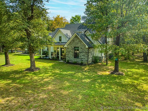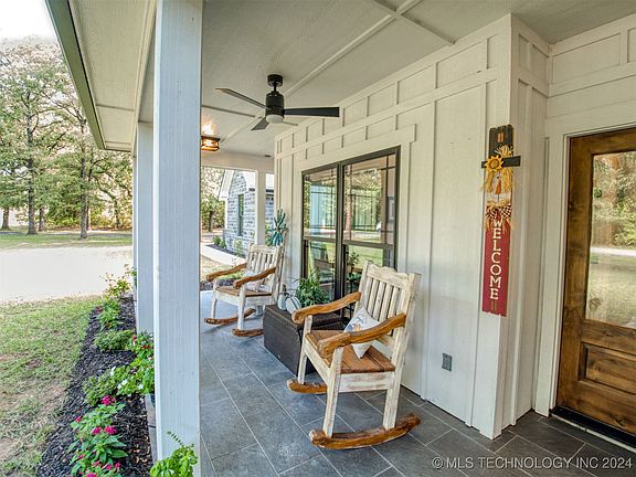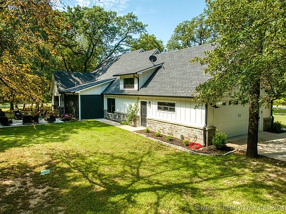 Exquisite modern home at Lake Texoma located in The Woodlands! Custom built in 2021 this farm house design offers four bedrooms, four bathrooms, and a bonus room currently an office can easily be converted into a fifth bedroom giving ample space for a large family retreat. High end features throughout the property. Tall vaulted ceilings with wooden beam accents, hardwood floors, granite and tile accents in the kitchen and bathrooms, access to the patio area from master bedroom, large master bath with his and her vanity, walk in shower, and oversized walk in closet, inviting covered front patio, custom automated screened in shades on back covered patio, tile flooring on front and back concreted patio areas, 2 car garage, sidewalks, landscaping, and paved driveway. All sitting on a large .68 acre corner lot secluded in the back of the addition near the water’s edge. Neighborhood boasts two lake access trails to the sandy beaches of Texoma. Nearby boat ramp just a short golf cart stroll to Sander’s Island View!
