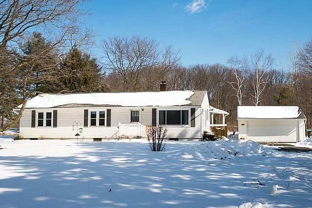 This gorgeous 3 bedroom ranch has tremendous curb appeal and looks absolutely stunning boasting panoramic views from every window. Perhaps the most attractive feature is the jaw dropping 5 acre parcel that has massive mature trees, flowing pines along with a large yared perfect for family fun and adventure. Other features include: newer kitchen appliances, coved ceilings in the living room, newer windows, newer vinyl siding, 2.5 car garage with electric and workshop. This house is set way off the road ensuring a peaceful and relaxing atmosphere for any owner. All appliances included. Excellent price so call for your showing today!