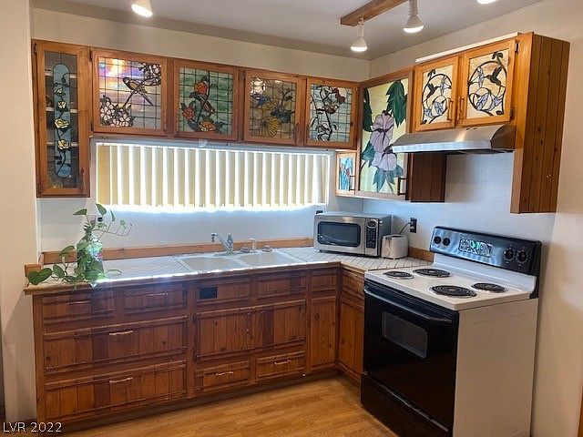 60x39 garage with Cute apt inside. Great for home shop or car collector. Remote gate and large lot fully fenced. Walk in shower ,W/D .Kitchen cabinets with custom stain glass !