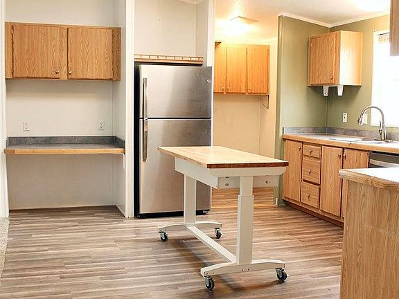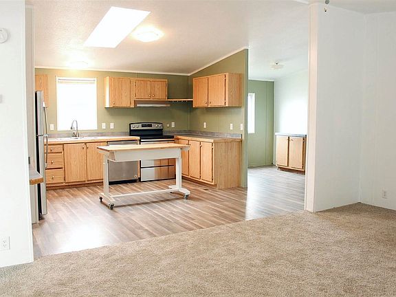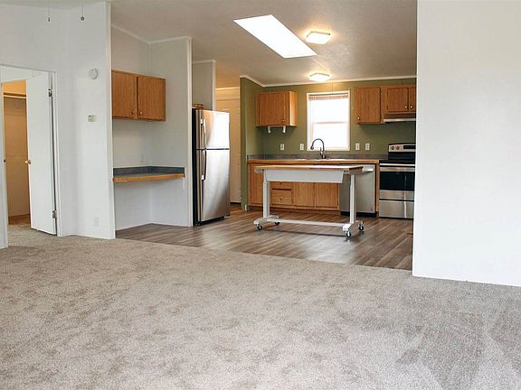 This 4 bed , 2 bath manufactured home is awaiting a new owner. This home is move in ready. It is conveniently located right across from the playground/splash pad in the trailer park. Upon entering the home you are graced with an open kitchen concept to the living room making it perfect for all of your entertainment needs. The kitchen has plenty of counter and cupboard space to store all of your kitchen essentials. All of the kitchen appliances are new! Off of the living room you have your master bedroom with your own private master bathroom. The other 3 bedrooms and 1 bath is located on the opposite side of the home for privacy. Newer roof, new flooring all throughout the home, fresh interior and exterior paint, and a fully fenced yard. Lot space is $436 plus you pay water, sewer, and garbage.