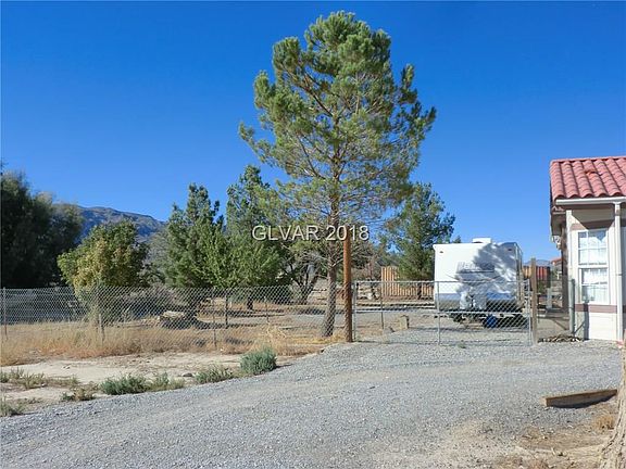 4.7 acres of fully fenced usable land with mobile home (converted to real property) add on family room with extra bedroom or office. 2 air conditioning units and 2 evaporator coolers and 1 more in garage workshop. solar panel for cooling family room. Many trees including Fruit and nut. Enclosed chicken coop (chickens stay), Enclosed raised garden area with drip system. Two large railroad car storage units included