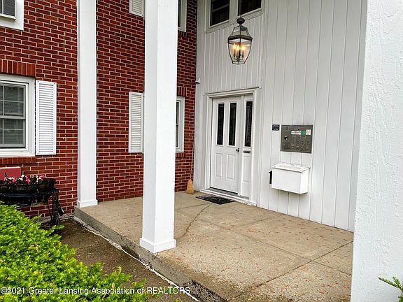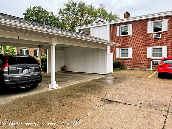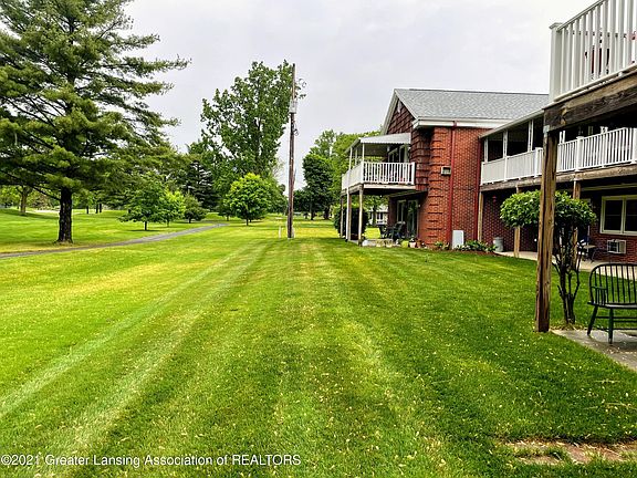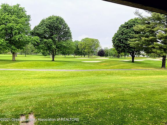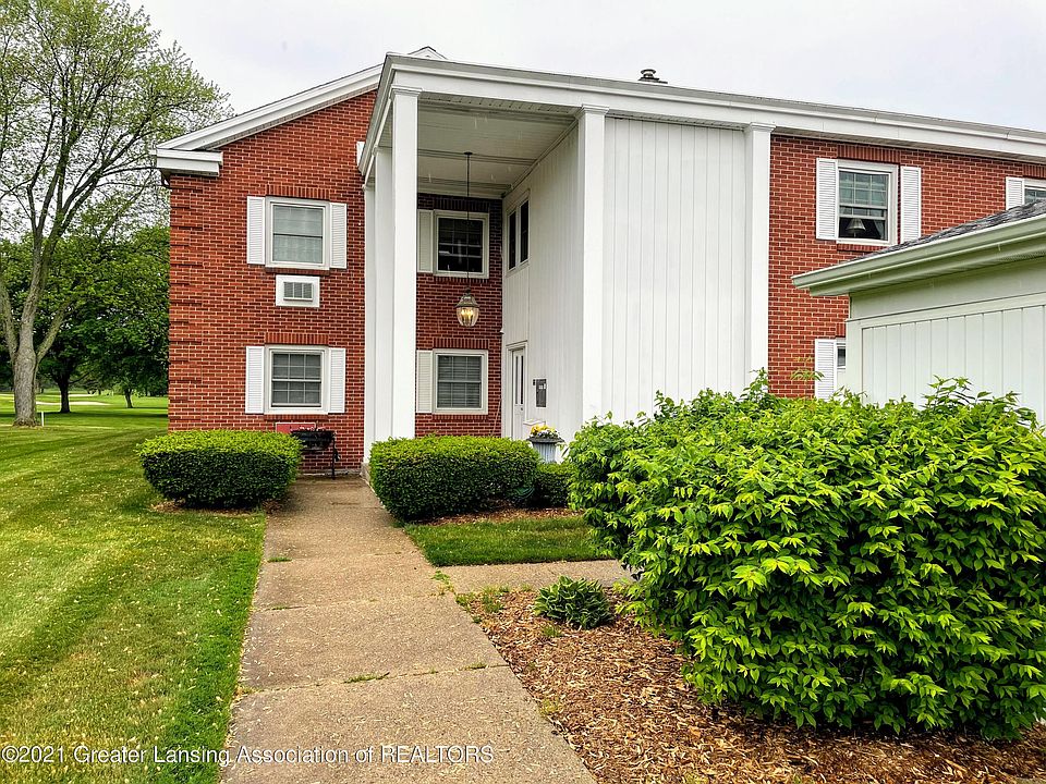 Ranch style end unit condo located on the 13th hole of The Lansing County Club Golf Cours Meticulously cared for by long-term owner. 2 bedrooms, 2 full baths. Kitchen includes a newer refrigerator and stove. Open floor plan with spacious living room and dining space with private golf course view. Access to large patio through slider door. Primary bedroom includes two large closets and a private full bath. Unit is 1 of 2 units in the complex that includes 2 parking spaces - one covered carport and one nex to front door. The building includes secured access, storage, and laundry in the basement. Community is well cared for and includes many updates including new carports, roof, and decks.