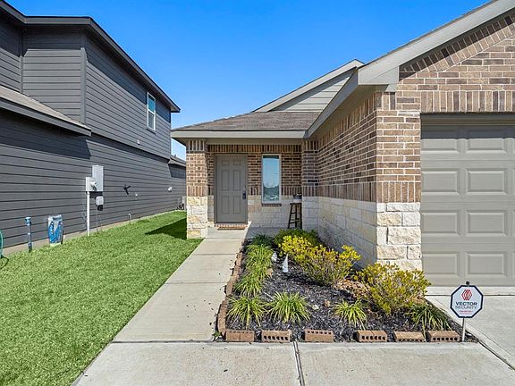 Welcome to this stunning 3-bedroom, 2.5-bath home, built in 2023, nestled in a newly developed neighborhood that offers everything you need for modern living. Enjoy the convenience of schools, parks, restaurants, and grocery stores all within a 5-mile radius. With easy access to I-45 and Beltway 8, commuting is a breeze! Step inside to a bright and spacious interior, featuring two bedrooms with private en-suite bathrooms, ensuring ultimate comfort and privacy. The open layout is perfect for entertaining, with a stylish kitchen, generous living area, and natural light streaming through large windows. The backyard is a peaceful retreat, fully fenced for privacy, and boasting a charming, covered patio area—ideal for relaxing or hosting gatherings. Don't miss the chance to make this beautiful home yours in a prime location!