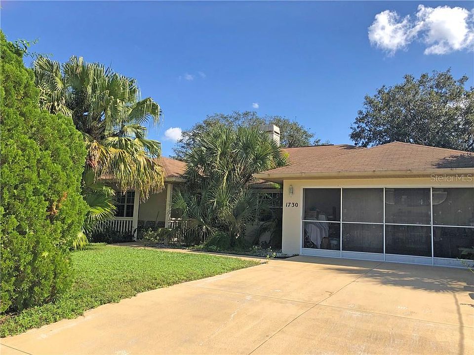 Impressive 2 Bedroom PLUS large Den/Office, 2 Bathroom home with attached 2 Car Garage. The spacious Den has a large window and could easily be converted to a third bedroom. This home is located in desirable growing North Port and the rear view is a private view of a park. This home offers a spacious split bedroom floor plan with Living Room, Dining Room, well equipped Kitchen with built in table, lots of storage and counter space and walk in closet pantry, Inside Laundry with washer, dryer and cabinets, front porch and large rear screened lanai overlooking the large yard. There are built ins for your collectibles, plant shelves, vaulted ceilings and a fireplace that opens to two rooms - the Living Room and Dining Room. The Master Bedroom suite is a generous size with walk in closets, lanai access and private bathroom with his and hers sinks and walk in shower. The guest bathroom has a tub/shower combo. The Garage has screened sliding doors at the opening, side door, pull down attic, laundry sink and garage door opener. This home is minutes from shopping, dining, community center, aquatic center and is an easy drive to beautiful Gulf beaches. Everything in the house stays. The seller is just taking clothing and a few personal items. Flood insurance is not required for this property.