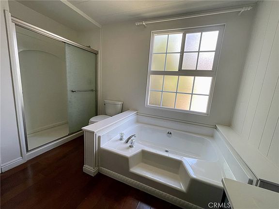 This large triple-wide has 1660+ sq ft of living space. The floor plan is currently 2 bedrooms with a den for optional 3rd bedroom. There is already a small bathroom near this area along with full mirrored wardrobe closet. In all-age, gated community, with swimming pool, spa and clubhouse. New roads installed throughout the park making this a rare find for all-age community.