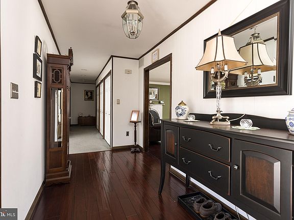 Welcome to 17300 Evna Road, a 4BR/3BA raised rancher with 2,943 sqft, with a two-car garage on nearly 3.5 acres sitting on the cusp of the Gunpowder State Park in Parkton; this immaculately well-kept and updated home is truly one of a kind! Within, one will find an expansive foyer leading to both the dining and living room (also known as the great room), along with access to the kitchen on one wing of the home and access to the first-floor bedrooms located on the other wing of the house, including the primary suite. Starting in the kitchen, one will find an updated kitchen with Corian countertops, a double wall oven, plenty of cabinet and countertop space, S.S appliances, a built-in microwave, a lovely backsplash, a breakfast bar, and a ceramic floor with a captivating inlay. Remember the breakfast nook, which has plenty of space for dining. The great room, with expansive space, can display an entire dining room set and a living room set, with the ability to still feel spacious. With cherry hardwood floors and near floor-to-ceiling windows, including Pella sliding doors, to the expansive deck, this room has exquisite views of the Gunpowder State Park across the street and access to the oversized deck to enjoy nature from the deck in the summer or inside during the winter. With crown molding throughout this room and a marble fireplace hearth, this room has timeless features. Further down the hallway is a lovely updated hall bath with a glass shower door, updated flooring, and vanity. The first bedroom, presently used as a home office, includes hardwoods, a large closet, and plenty of lighting. Onto the primary suite, with two large closets, a lovely updated bathroom, hardwoods within the bedroom, and access to the large deck. Onto the basement, one will find two large bedrooms with hardwood flooring and plenty of natural light. Along with a completely updated full bathroom and plentiful closet and storage space, the basement has a game area with the capability for a pool table, a separate television/entertainment nook, and a highly efficient pellet stove to keep the basement and home warm. Remember the unfinished area, great for storage. On the exterior, one will find an oversized deck with trex decking, built-in benches, and a spacious stairway to the yard. A Guardian generator with three backup propane tanks ensures the house will run in case of an outage.