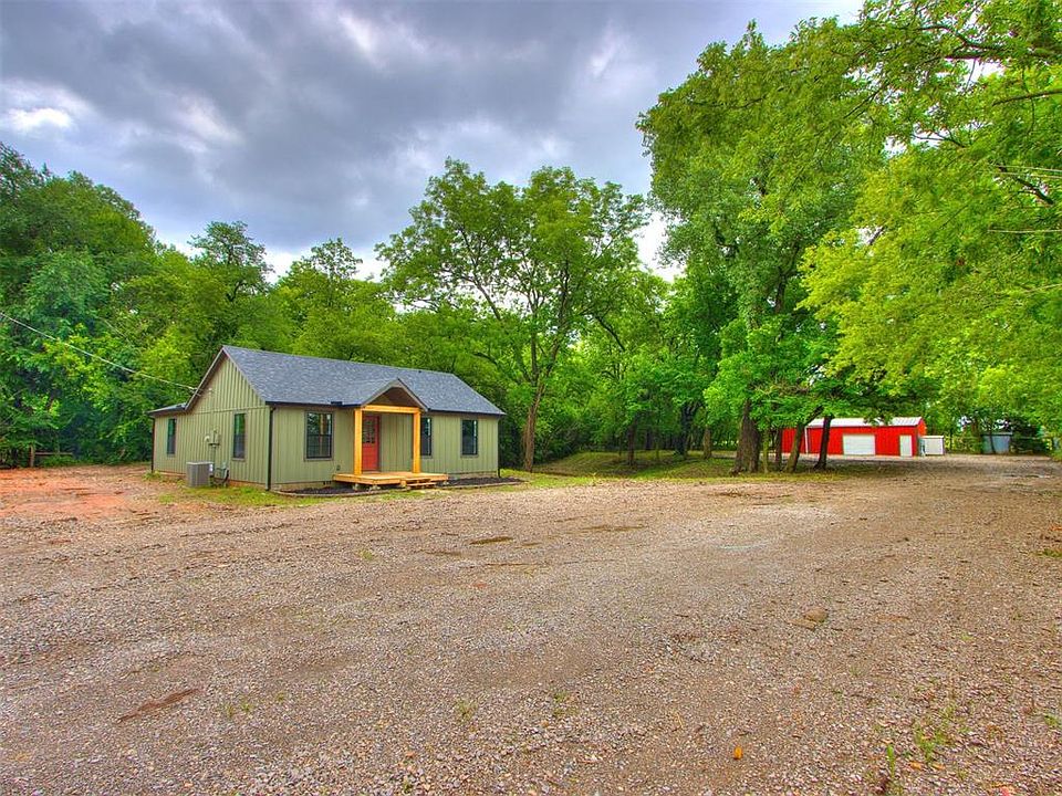 Tucked away on a spacious, wooded 1-acre lot in Choctaw, this fully rebuilt home is packed with brand-new everything—giving you a fresh, move-in-ready space from top to bottom. Inside, you’ll find a bright open kitchen with soft green cabinets, stainless appliances, and butcher block-style counters, plus light flooring that flows through the space and big windows that bring the outdoors in. The bathroom has a stylish tiled tub surround and black matte fixtures that add a bit of edge. Out back, there’s a large detached shop—perfect for hobbies, storage, or workspace—and the gravel drive makes access a breeze. It’s a solid setup for someone who wants modern comforts and a little land to call their own, just minutes from everything in Choctaw. Ready for you to come put your personal touch on it!