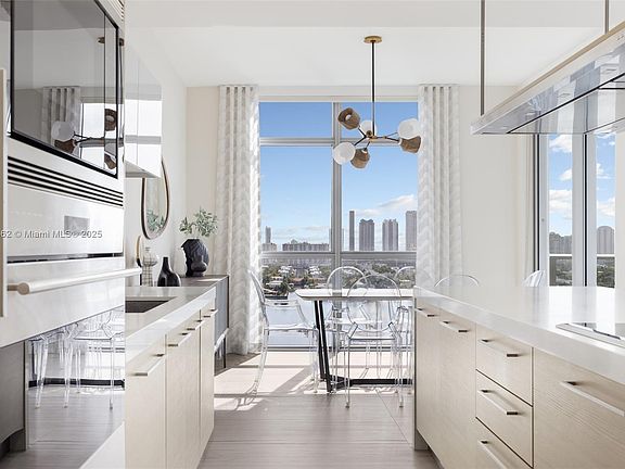 Residence 2009 at Marina Palms is a high-floor southeast corner home with 3 bedrooms, 3.5 bathrooms, and 2,219 SF of refined living. Enjoy sweeping views of the Intracoastal, Atlantic Ocean, and Miami skyline from every room. This rare offering includes a private deeded boat slip for vessels up to 60 feet, bringing your yacht right to your doorstep. Interior features include porcelain flooring, marble-appointed baths, and a gourmet kitchen with Snaidero cabinetry and Wolf, Sub-Zero, and Miele appliances. An expansive terrace extends the living space outdoors. Residents enjoy world-class amenities: spa, fitness center, infinity-edge pool, private marina with dock master, butler service, plus two garage spaces and a storage unit.