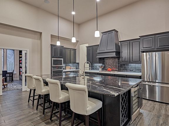 Extended patioEpoxied floor in garageBuilt-in wine fridgeGame roomMedia roomWalk-in closetsLarge utility room