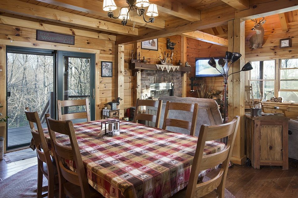 Stunning 3800 sq 3 bed/4 bath custom log home nestled on 11 pristine acres. The home offers endless rustic charm in a beautiful rural setting. Featuring hand-crafted walnut cabinets and counters tops throughout which were all harvested off the neighboring property. The wrap around porch offers panoramic views of the rolling timber and pond just steps from the back door. Fully finished walkout basement with stained concrete floors, wet bar and plenty of room for entertaining. Geo-thermal (New in 2019) throughout the home offers high efficiency heating and cooling in the summer and winter months. The home has 2 new water heaters installed in 2019 as well as a new water softener. The 30 x 40 climate controlled workshop connected to the home is currently used as we woodworking shop with 110 and 220 amp electricity. Above the workshop is a separate living area that would be ideal for in-law quarters or used as an apartment.