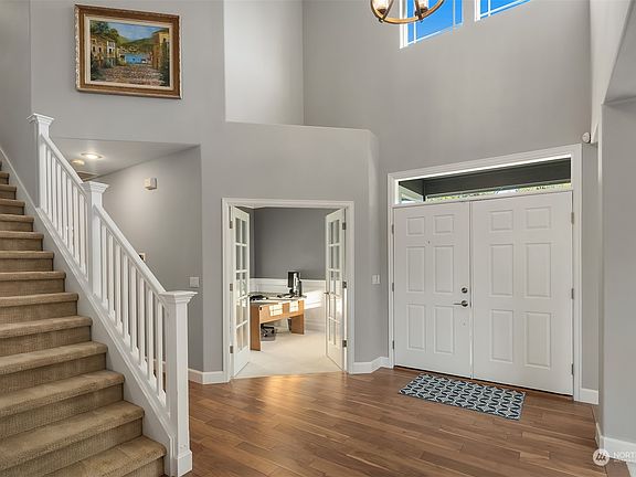 Exceptional home on a corner lot in The Parks, one of Fairwood's most coveted communities. Stylishly updated and meticulously maintained, updated kitchen and bathrooms, fresh interior and exterior paint, newer roof, siding and furnace and more, move-in ready! Super functional floorplan, main floor den with adjoining 3/4 bath, work from home space or guest suite, a second staircase for easy kitchen access from the upstairs bonus room, spacious family room off the open kitchen. Primary suite has a walk-in closet and fabulously updated 5-piece bathroom. Backyard Oasis is primed for entertaining with an oversized patio and hot tub. Parks, playgrounds and lots of nearby trails for outdoor activities. Great Schools! Close to shopping.