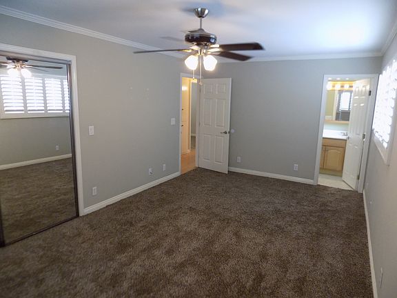2 of the 3 bedrooms are good sized with en suite bathrooms. Central heat. No A/C but all bedrooms and living room have ceiling fans. Window shudders. Attached 2 car garage with hook-ups for washer/dryer. Plenty of parking with driveway and off-street spaces. Across street from a park. Quiet neighborhood. Tenant responsible for lawn maintenance and all utilities.