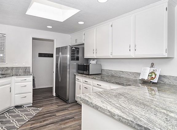 Charming remodeled Single Level Home in the Beautiful city of Fountain Valley! This 4 Bedroom/2 Bathroom home is situated on a large interior lot of 7,202 sq.ft. The light and bright remodeled Kitchen features Granite counter tops, a corner sink with windows overlooking the front yard allowing for excellent natural light and a breakfast bar that is a perfect for serving all your meals. The large Living room with stone fireplace is ideal for those cold winter nights. The Dining area blends perfectly with the Kitchen & Living room, giving the space a truly open feel! French doors lead to the pool size, private backyard and patio, perfect for outdoor entertaining with family and friends! The inviting Master bedroom with a remodeled Master bathroom features a shower with glass doors, quartz countertops and neutral custom cabinets. The hall bathroom has been remodeled with quartz countertops, a subway tile shower & tub and custom vanity cabinet. All bedrooms have ceiling fans and are generous in size with large closets. This home also includes: new luxury vinyl plank flooring throughout, dual pane windows and French doors, scraped ceilings, skylights & new interior paint. Located within the highly desirable Fountain Valley School District, walking distance to a great neighborhood park, close to major shopping and dining areas as well as the world famous Southern California Coastline! This home has it all!!