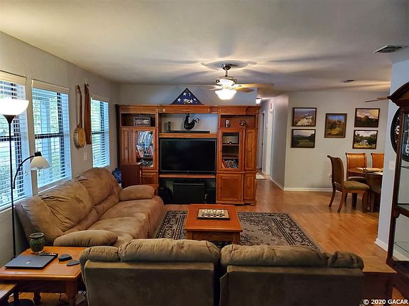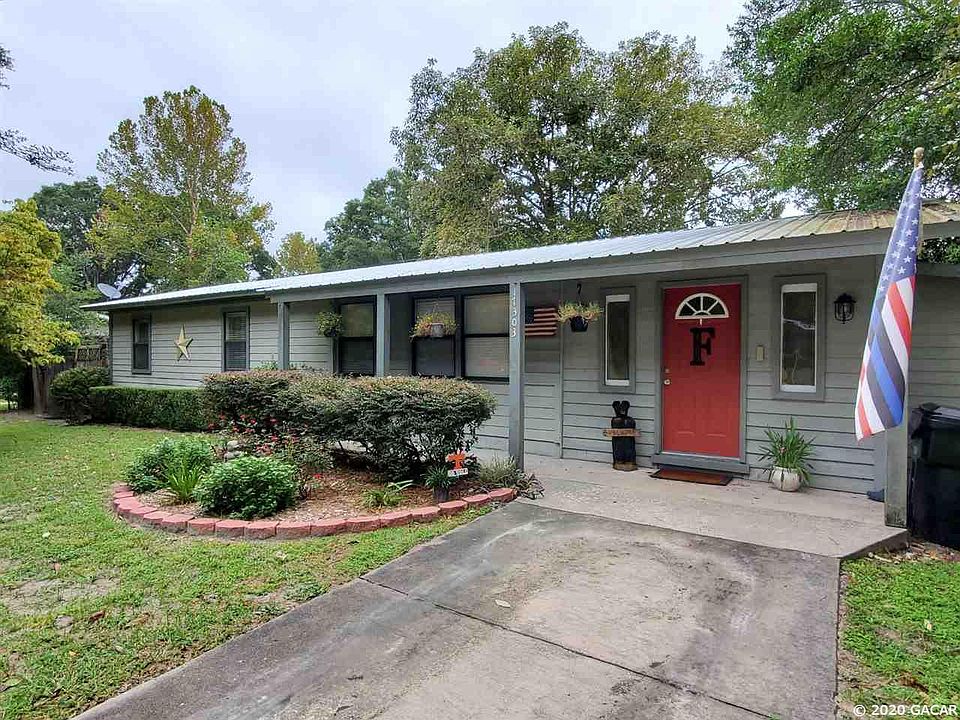 A charming home in the heart of High Springs. Pictures do not do this home justice. This well cared for home offers, a new metal roof, a privacy fenced in yard, a shed, an attached garage, a beautiful landscaped yard with crape myrtles, many other trees, and flowering plants. If grilling out or having family and friends over for outdoor gatherings is your thing, this home has you covered. Check out the beautiful large covered and screened in back deck boasting cypress siding that comes complete with an additional attached and covered grilling area. (The back deck has a TV already installed and will stay with home). If inside kitchen space is what you require, you're in luck, take a look at the large extended heated and cooled kitchen pantry/storage area which offers an abundance of extra space. The kitchen has butcher block counter tops, and new tile installed. The interior of the home offers fresh paint, beautiful wood laminate flooring throughout the common spaces, newer carpet in bedrooms, and tile in bathrooms.