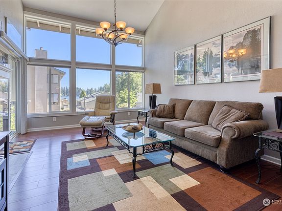 Fully renovated home with lake views, lake access and all the amenities at Coffee Creek! Beautifully updated condominium features updated flooring throughout, quartz countertops in kitchen and bathrooms, stainless appliances, a gas fireplace, vaulted ceilings and more! Enjoy gorgeous lake views from expansive living room windows and a private patio. Upstairs primary suite includes spacious walk-in closet and 3/4 bathroom w/ walk-in shower. Private garage w/ additional storage downstairs. Enjoy the luxury of private lake access, as well as access to community basketball and tennis courts, swimming pool, and designated RV or boat storage space. Easy access for commuting, shopping, dining, schools and JBLM. You have to see this one!