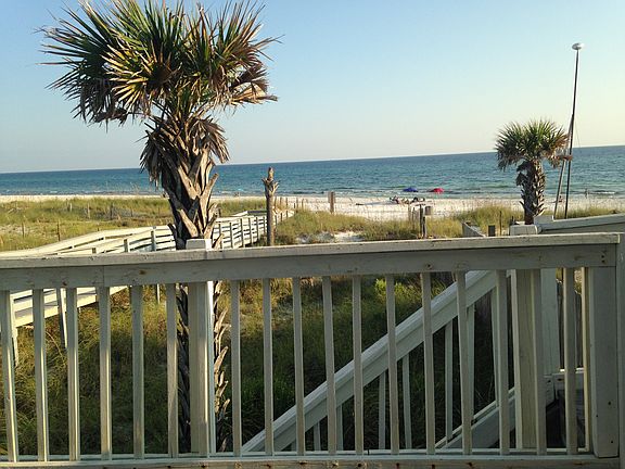 Blue Surf Townhouses is located on the far west end of Panama City Beach - adjoining the beaches of South Walton. Near to the Northwest Florida International Airport, Pier Park, many shops, restaurants and entertainment places. No HOA dues or association rules. This home is an end unit with large lot of snow white sand, deeded to the gulf water. The kitchen has been opened up to the dining area and living room, bathroom and closets on the first floor, two bedrooms with the balconies per which one and joint full bathroom. Lot of full wall windows overlooking the gulf. Hugh deck with the stairs leading to the sand and the water of the Gulf. Home has new roof, new hard flooring, newly painted, granite kitchen countertop, kitchen cabinets and many more upgrades. The property includes large parking area, recently renovated with new concrete. This townhome is very suitable for a steady income through vacation rentals or for enjoying full time living on the beach.